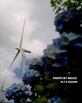 風力発電の風車が15機もあって独特の音が〜 間近に見るとその大きさは圧巻
